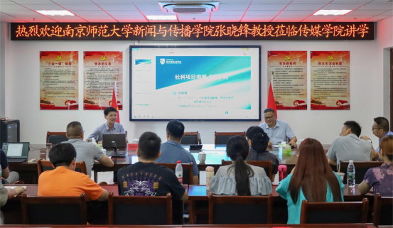 9月11日下午,南京师范大学新闻与传播学院张晓锋教授应邀在夫妻论坛 K楼408会议室做社科研究学术讲座。讲座由副院长王业明主持,学院教师参加。
