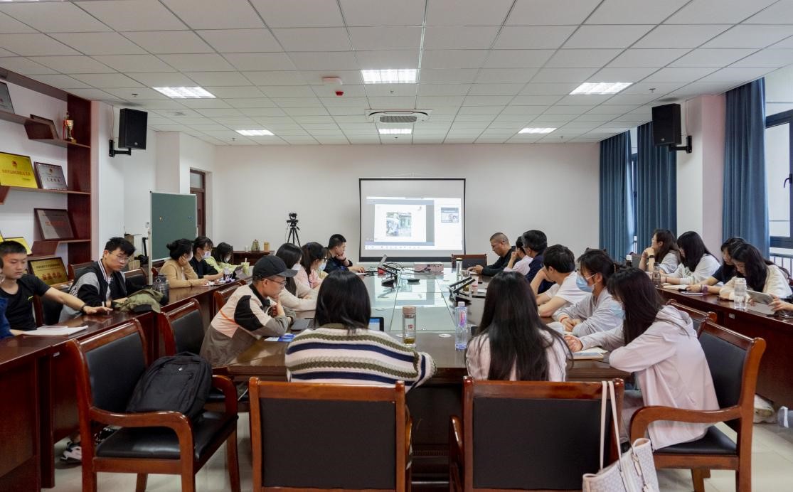 副院长王业明主持讲座, 2021级新闻与传播全体研究生和学院部分老师聆听了讲座。