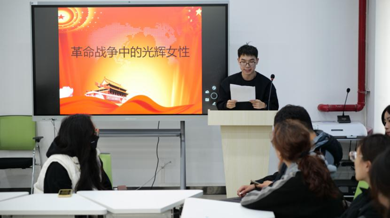 在东门学生一站式服务中心一楼多功能厅开展“党员心声大家谈”活动,本期活动以三八妇女节为背景,围绕“革命战争中的光辉女性”这一主题展开了热烈的探讨与交流。学院全体学生党员参加活动,其中12名代表各自分享了自己心目中的光辉女性。