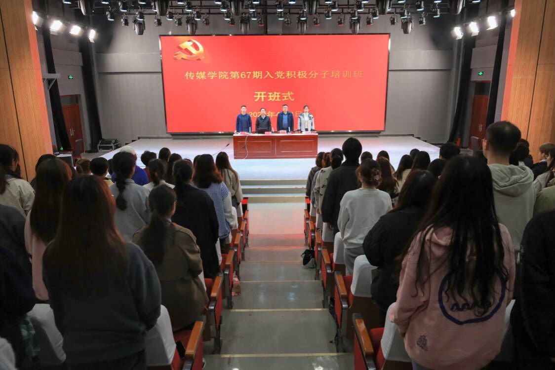 在演播厅举行第67期入党积极分子培训班开班仪式。学院党委书记詹德全、学生党支部书记、第67期全体入党积极分子参加开班式。开班典礼由学院党委委员、副院长王业明主持。