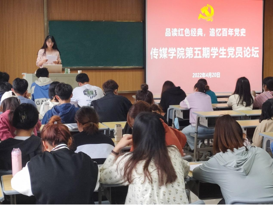 在K505教室举办以“品读红色经典,追忆百年党史”为主题的第五期学生党员论坛。学院全体学生党员参加了论坛。学院党委副书记张万茂主持了论坛。