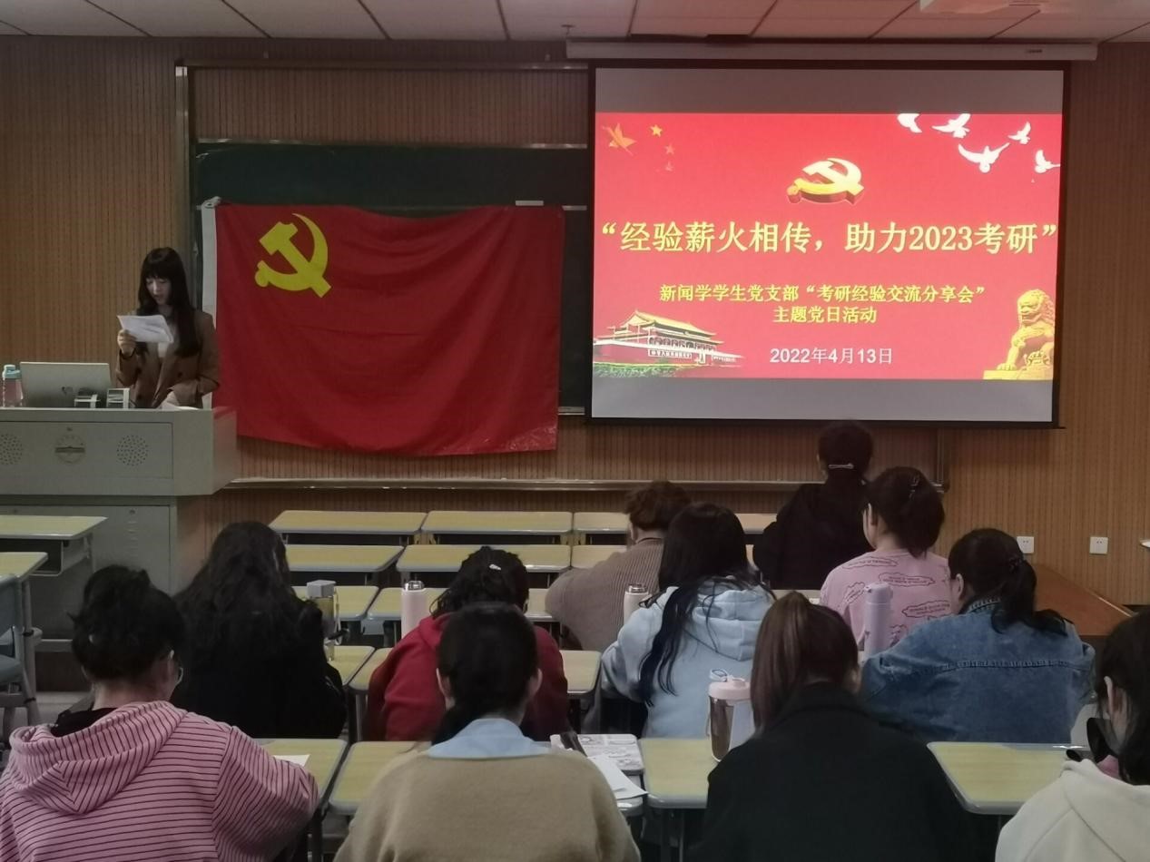 新闻学学生党支部在K楼516教室开展题为“经验薪火相传,助力2023考研”的“考研经验分享会”主题党日活动。来自学院2020级、2021级研究生和2018级毕业生党员担任主讲人,为支部全体学生党员分享考研经验。会议由学院党委副书记、党支部书记张万茂主持。