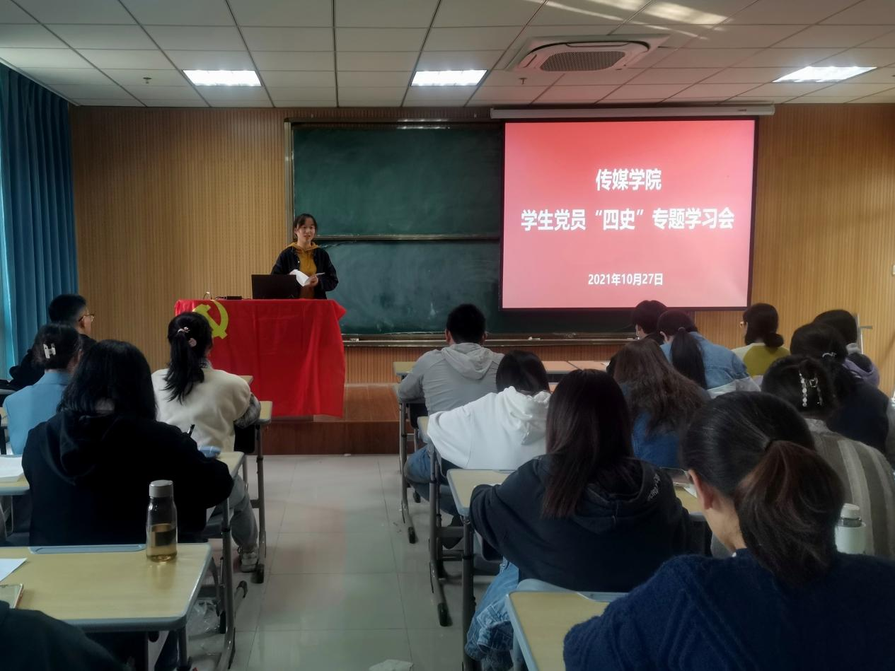 于K517教室开展学生党员“四史”专题学习会。学院团委书记董小雨带领全体党员专题学习了《中华人民共和国简史》。