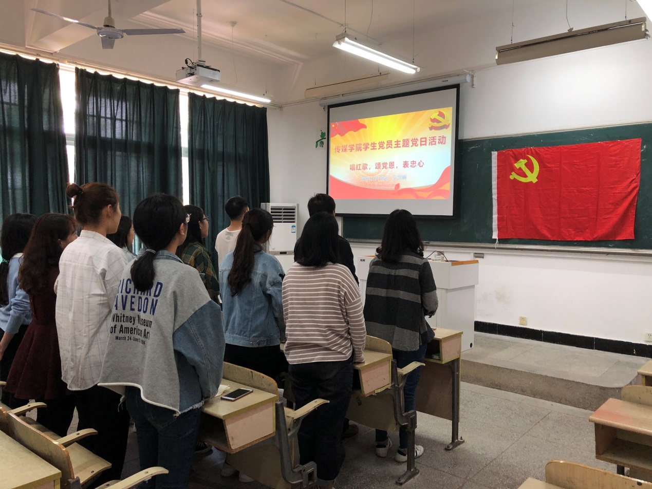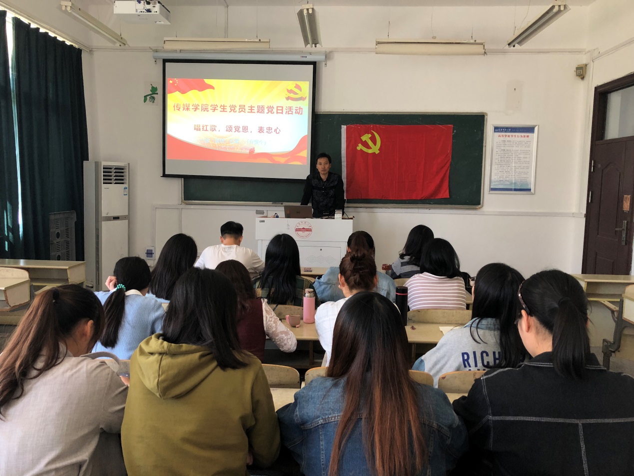 全体学生党员开展“唱红歌 颂党恩 表忠心”主题党日活动,学唱红色歌曲《十送红军》,借红歌之名,颂党的恩情,不忘初心跟党走。活动由广播电视学学生党支部书记董小雨老师主持。