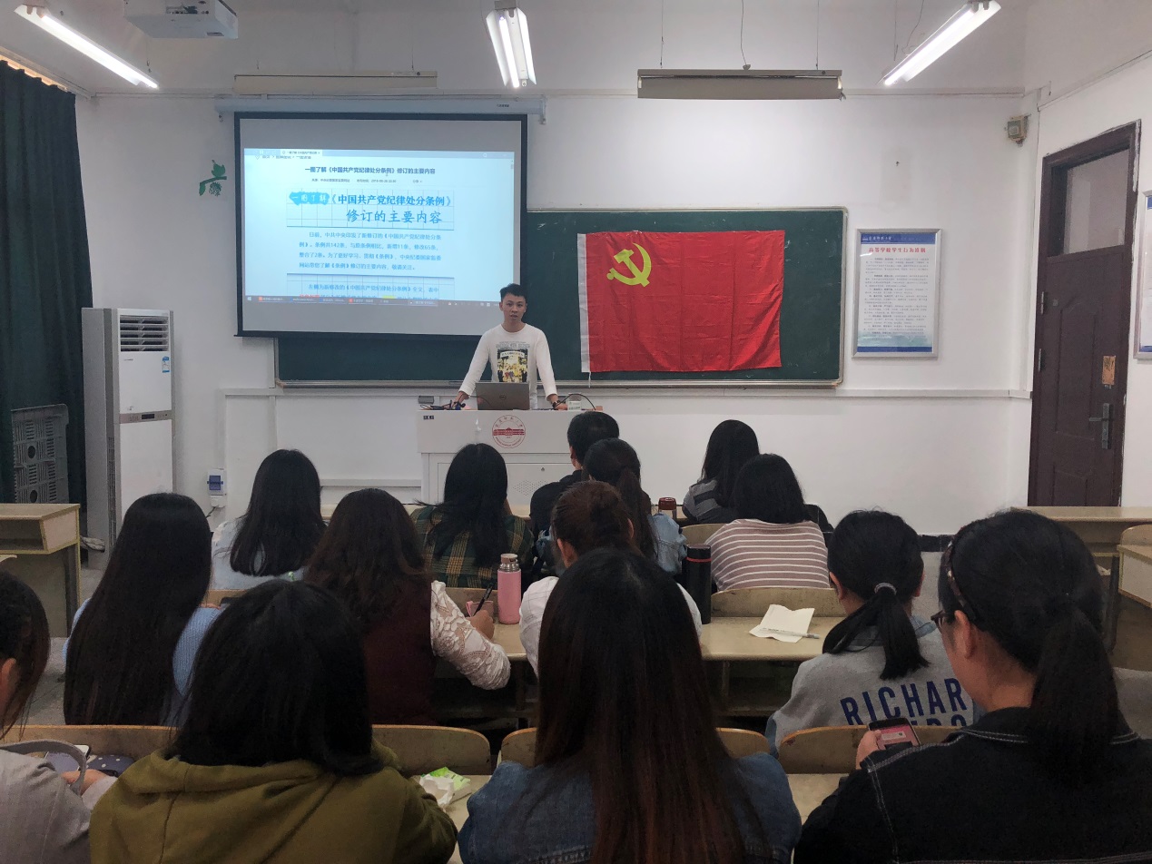活动最后,新闻学学生党支部书记李俊老师带领大家共同学习了新修订的《中国共产党纪律处分条例》。