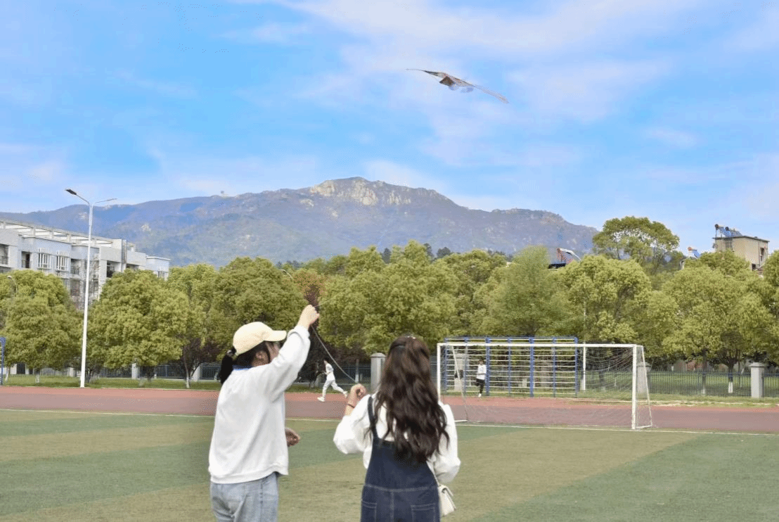 装饰着童趣卡通人物和春日的红花绿意的风筝在被放飞后被学生们仔细珍藏,承载着学生心愿的创意风筝也在蔚蓝的天空中飘舞,风筝上有学生对考研上岸的期望,也有希望生活中所遇到的烦恼可以随春风一同扬升或释散的愿望……