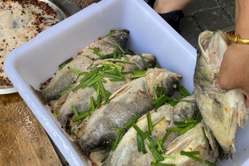 “寻梦徽文化”暑期实践团队走进黄山市汤口镇一家正宗徽菜馆学习臭鳜鱼的腌制工艺。