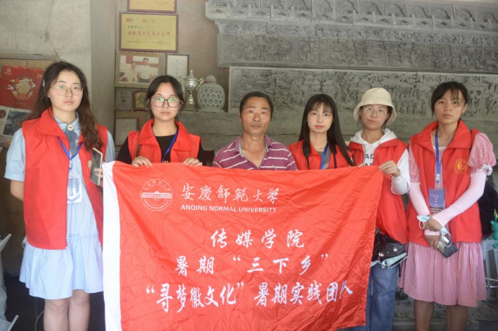 “寻梦徽文化”暑期实践团队寻访了安徽省工艺美术大师吴梓祥的工作室,进行砖雕工艺实地参观并学习。随后,团队去往黄山市祁门县大北村,进行了徽文化之根雕技艺的调研活动。