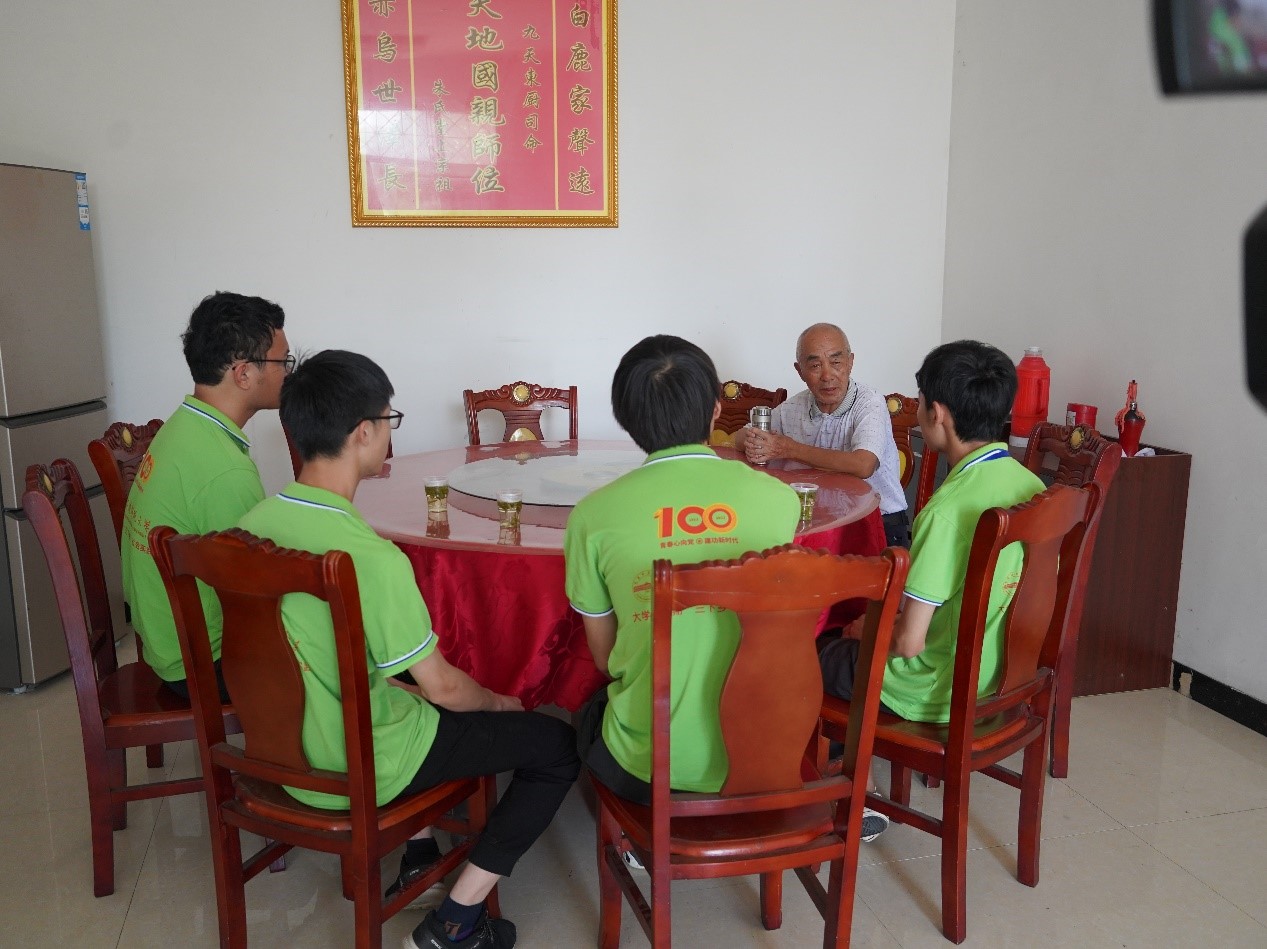 “滑石印象”乡村振兴实践团前往滑石村前村支书朱祥火家中,了解滑石村的振兴之路。