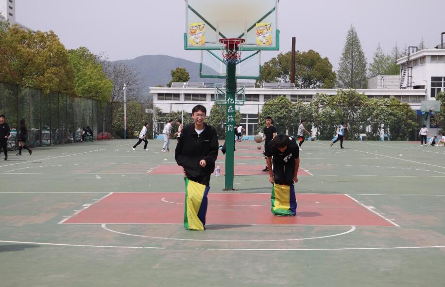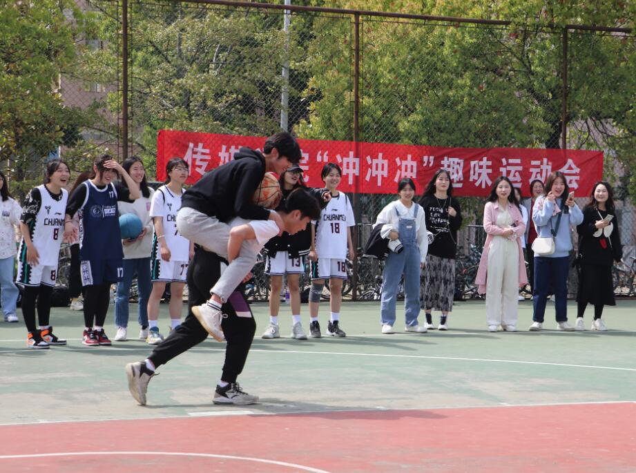本届“冲冲冲”趣味运动会面向学院全体学生,以球队为单位报名,其中男女各两只球队,共计四支球队,需要完成两人三足、背人投篮、袋鼠跳和双人夹球投篮4个项目的挑战。