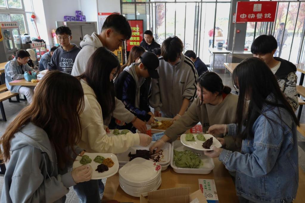 “我们家清明节会吃蒿子粑。”“我们家那边清明节都会放风筝。”……由于来自不同的地方,学生们也在互相分享着不同地区的风俗习惯。在此之前,来自安徽淮北的闫如玉从来没有吃过青团,在了解到此次活动要制作青团后,她特意从网上查找了相关资料。“青团的面很粘手,在同学们的提醒下我才知道得用熟食粉抹在青团表面。”