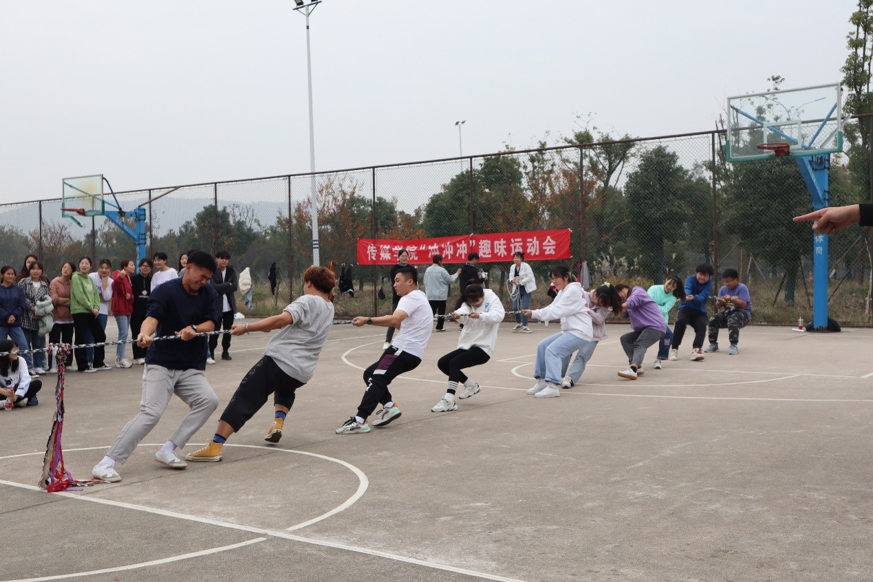 在南门篮球场举办了第二届“冲冲冲”趣味运动会。来自学院各班级的14支队伍、200余人参加了本次趣味运动会。