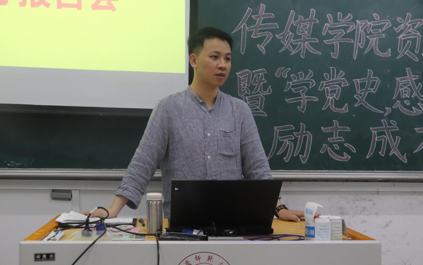 随后,七位优秀学生代表采取线上线下相结合的方式为学生们分享自己的成长感悟。网络与新媒体专业2018(2)班的程青林从个人对党的认识角度进行宣讲,“感谢党和国家给我们学习的机会,我要常怀感恩之心,用实际行动为党和国家奉献青春。”他表示,自己的成长离不开国家和学校的支持,自己所取得的成就离不开老师、家人和同学的帮助,在今后的日子里,自己也会不断努力,把这一份温暖传递下去,做一个对社会有用的人。