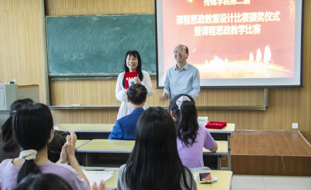 本次活动分为两个环节。第一个环节,为此前学院组织的课程思政教案设计比赛获奖的六位老师颁奖。第二个环节,开展课程思政教学现场比赛,共有3名教师参加角逐。
