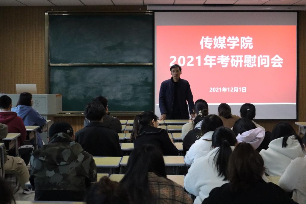 在K505教室举办了2021年考研慰问会。学院党委副书记张万茂、团委负责人、毕业班辅导员和2021届考研学生代表100余人参加了慰问会。