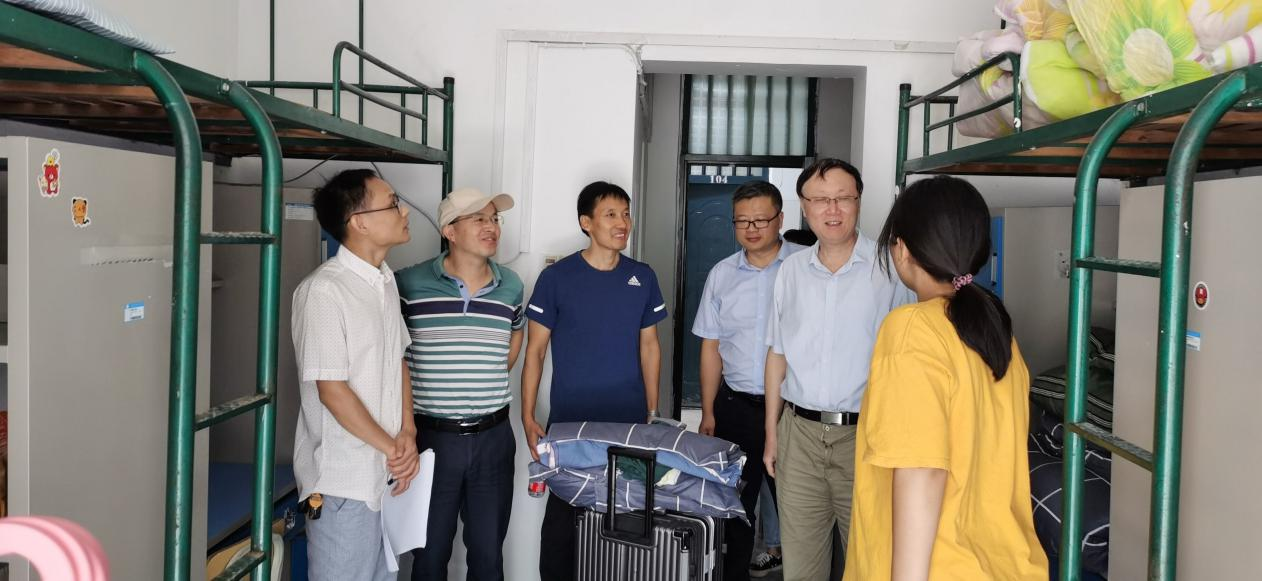 党委书记韦长发、院长马俊、党委副书记张万茂、副院长王业明、段萱和新生辅导员一起走访了新生宿舍。