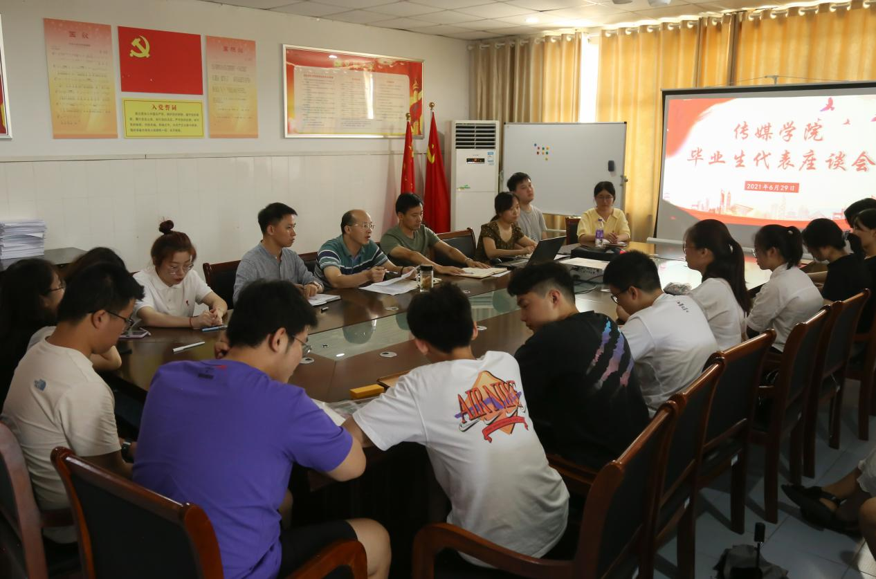 座谈会上,毕业生们对学院领导和老师在校期间给予自己的关心和支持表达了感谢,并结合自身实际对学院在社会实践、课程设置、学生社团活动、考研、创新课余活动、学生技术能力培养等方面提出了宝贵意见和建议。广播电视学专业2017(1)班的吴浩表示自己大学四年成长了许多,也学到了很多,不仅是专业课程上的学习,更是学院给予的课外实践机会,“这些经历都是我人生中重要的一部分,正是有了这些实践经历,我的大学生活才更精彩。”同时,他也对学院的实践工作提出建议,希望学院扩大学生实践平台,让更多传媒学子投入专业实践,从而加强自身专业性。