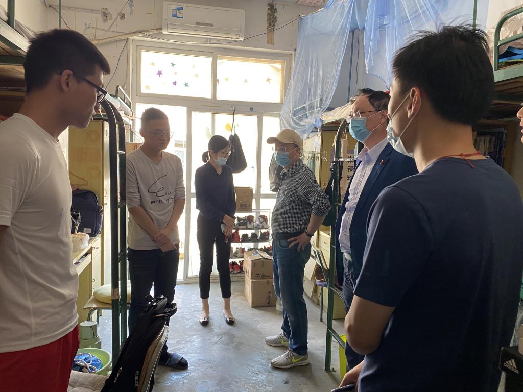党总支书记韦长发、院长马俊、党总支副书记张万茂带领研究生辅导员和本科毕业班辅导员一行对首批返校学生宿舍进行走访。