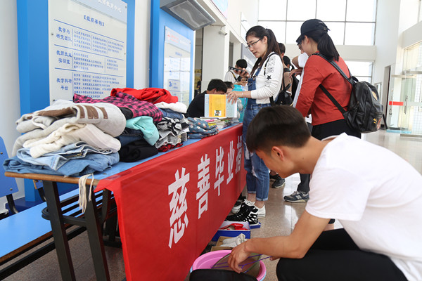 “在本次活动中,大四毕业生将他们的书籍资料、台灯、衣物等用品捐献出来。”活动负责人董小雨介绍,活动主要目的是让毕业捐献成为一种潮流,学生们能够以“爱”为大学生涯画上句号,同时用爱践行微公益。