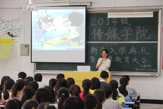 此次召开开学典礼暨入学教育大会,旨在培养新生对学校、学院、专业的认同感,加强新生的安全意识,指引2014级新生们更好地开始大学生活,完成了新生入学的第一课。持续两个多小时的开学典礼和入学教育大会,使新生同学们思想上深受教育、深有感触。大会刚结束,2014级新闻学专业的新生袁斌同学说:“参加这次典礼,我更多的认识了我所选择的学校和专业,我会努力学习成为一名合格的传媒人。”