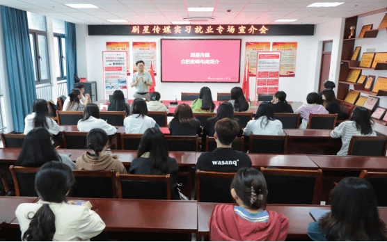在K408会议室举办剧星传媒实习就业专场宣介会。会议邀请剧星传媒全资子公司“麦峰电商”副总经理孟跃担任主讲人。2023届、2024届毕业生参加会议。宣介会由学院党委副书记张万茂主持。