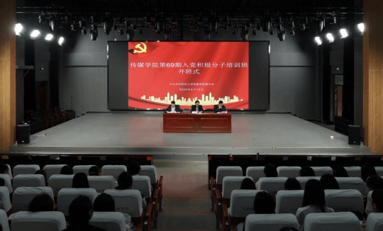 在演播厅举行第69期入党积极分子开班仪式。党委书记詹德全、党委副书记张万茂、各学生党支部书记出席仪式,全体入党积极分子和第69期党课培训班学员参加会议。