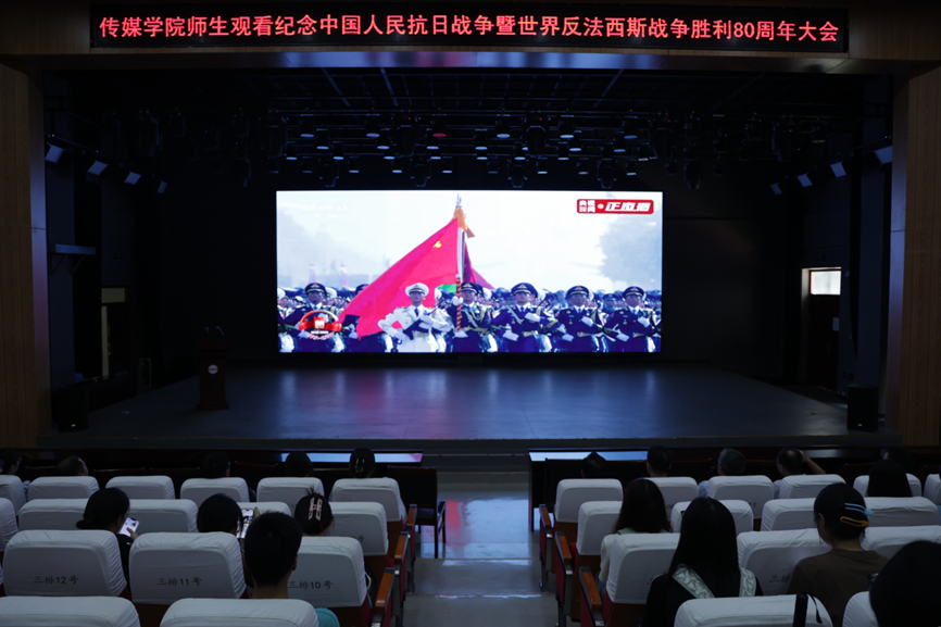 党政领导班子成员与师生代表近百人齐聚学院演播厅,通过直播镜头共同见证这一承载历史记忆、凝聚民族力量的重要时刻。