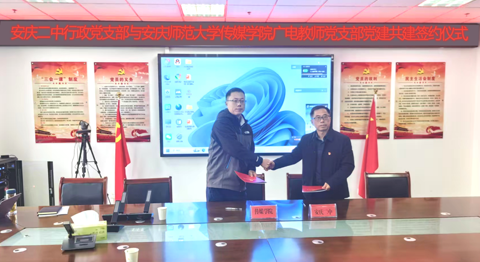 广播电视学教师党支部与安庆二中行政党支部沟通合作的桥梁。下一步,双方将以共建协议为依托,常态化开展各类党建活动,实现校地教育资源优势互补,共同推动党建工作提质增效。(撰稿:谢晋,摄影:章娟娟,审核:李元、文继奎)
