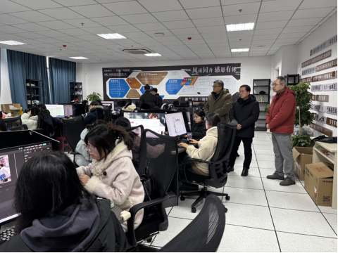 1月28日,传媒学院党委书记詹德全、执行院长王业明、党委副书记李元等看望慰问寒假留校实习学生。