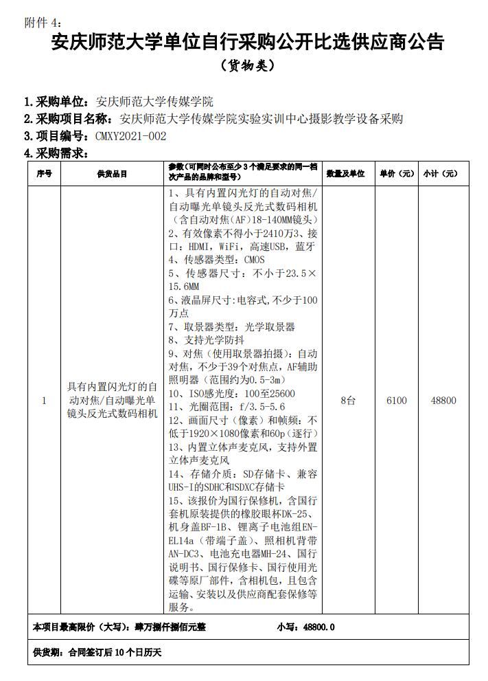 夫妻论坛 摄影教学设备采购公开比选供应商公告
