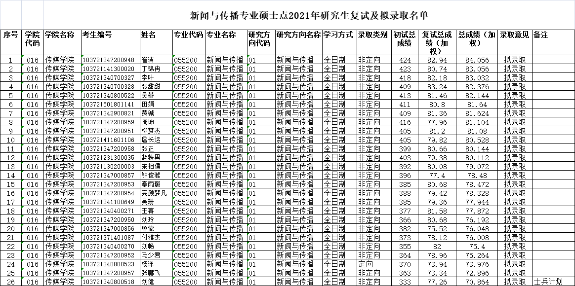 根据《夫妻论坛 2021年硕士研究生招生复试录取办法》等规定,现将新闻与传播专业硕士点2021年研究生复试结果及拟录取名单公示10天,公示时间从2021年4月2日开始。如有问题,请及时向学校研究生复试录取督查组反映,电话:0556-5300053,邮箱:[email protected]。