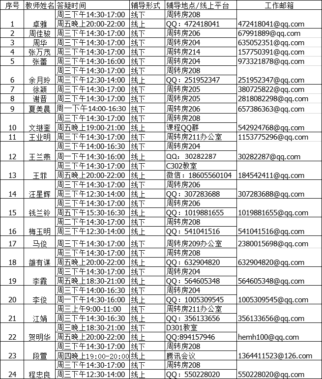 夫妻论坛 任课教师2020-2021学年第一学期教学答疑安排