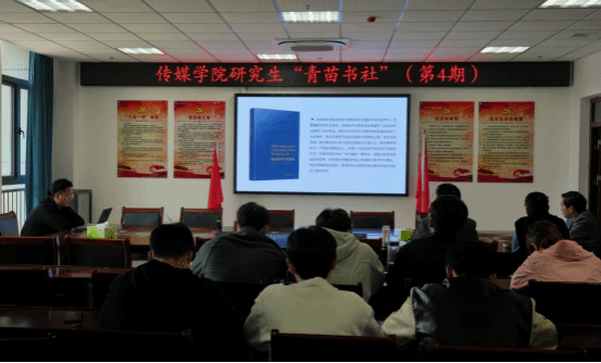 在K408开展“青苗书社”第四期活动。本期读书会的阅读书目为《现实的中介化建构》和《日常生活中的自我呈现》,22级研究生朱涛、陈清浅是本期读书会汇报人。该期读书会由史剑辉老师主持,2022级研究生及部分硕导参加。