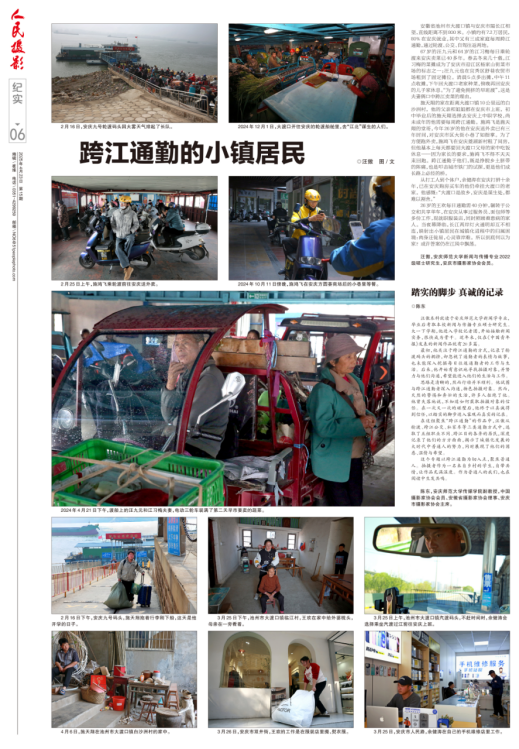 纪实摄影作品《跨江通勤的小镇居民》聚焦于池州市大渡口镇居民的“跨江通勤”现象。汪傲在陈东老师的指导下,克服困难寻找拍摄对象,进行跟踪纪实。作品以小镇居民跨江前往安庆市工作、生活的日常场景为切入点,通过组图展现他们的通勤方式、工作状态、生活面貌以及背后的社会、经济和文化因素,同时揭示因行政区划差异带来的现实困境与问题。