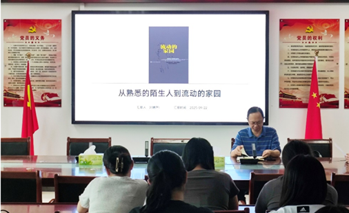 最后,黄钦教授以自身对两本书的深度阅读感悟为引,强调同学们在读书时,应要把握作者在书中提出的核心问题。他表示,本期读书会分享的两本书,其内容皆与“现代化”紧密相连,并由此引出书中内容对论文选题和撰写方面的启发,尤其是《流动的家园:“攸县的哥村”社区传播与身份共同体研究》一书,为同学们的论文写作提供了良好的参考对象并留下了重要的启示——以经验、现实为基础的论文写作才是富有生命力的。(撰稿 摄影:李新月 审核:王业明)