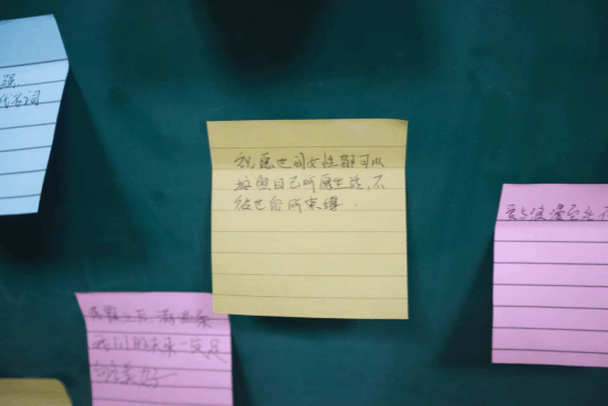 “女孩子就应该温柔点”“生理期而已,这么矫情干什么?”“女孩子上学有什么用?”……活动负责人在黑板上写下“标签”,每位参与活动的学生都有机会对这些标签进行“反抗”,勇敢地表达自己的观点对不赞同的标签说“不”,并在便签上写下寄语。