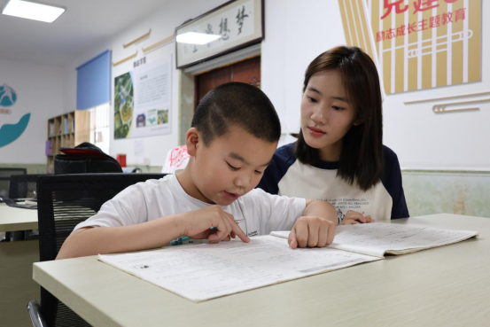 的学生们又化身为“临时教师”,为同学们进行了作业辅导。他们耐心细致地解答同学们的疑问,帮助孩子们解决学习中的难题。在大学生们的帮助下,孩子们的学习兴趣和积极性得到了极大的提高。作业辅导结束后,活动进入了轻松愉快的互动环节。在团委和学生团队的组织下,同学们纷纷拿起画笔、唱起歌谣、动手制作手工艺品。他们用自己的方式表达着对红色文化的热爱与传承,同时也展现出了中国青少年的多才多艺和蓬勃朝气。
