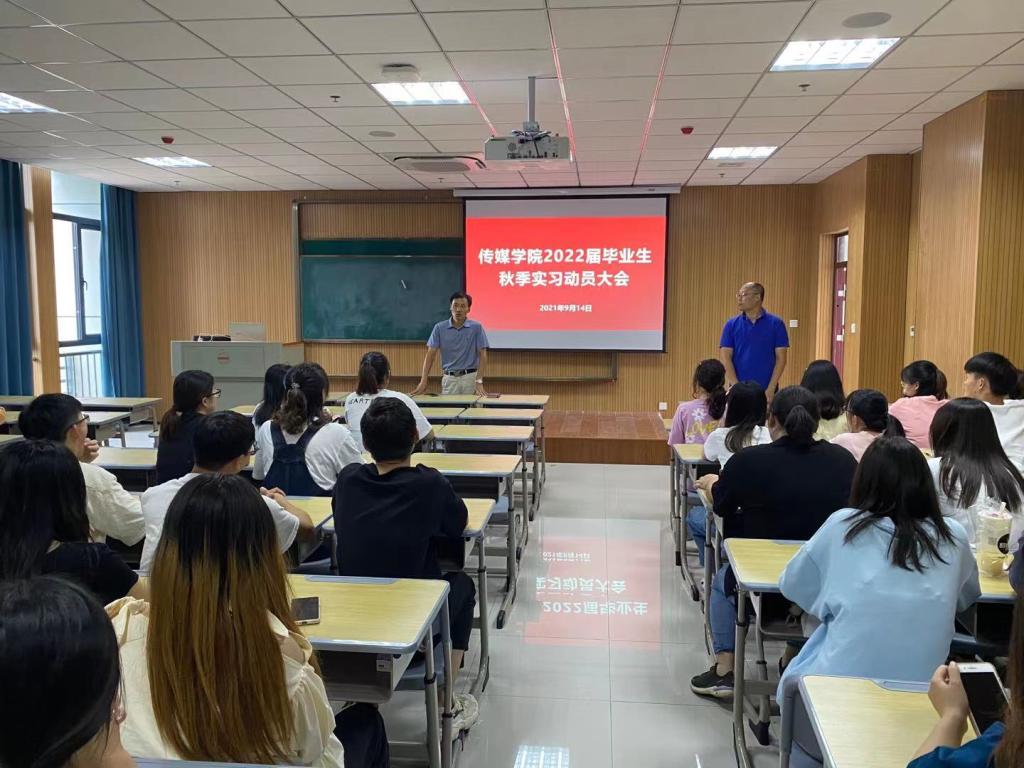 一直高度重视专业实习工作,此次实习联系了近十家媒体相关单位,为学生实习提供了充分的岗位保障。本次动员大会的召开,使同学们对理论学习阶段转入实践阶段有了多方位的认识,激发了大家参加实习的积极性,为实习工作的顺利进行奠定了良好基础。(撰稿:孙鹏飞 学生记者 张俊田 摄影:孙鹏飞 审核:王业明)