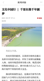 4.《淮河文化滋润中华文明》、《解读淮河,越过“中原”与“江南”》、《文化馆里,相遇“光影”<淮南子>》