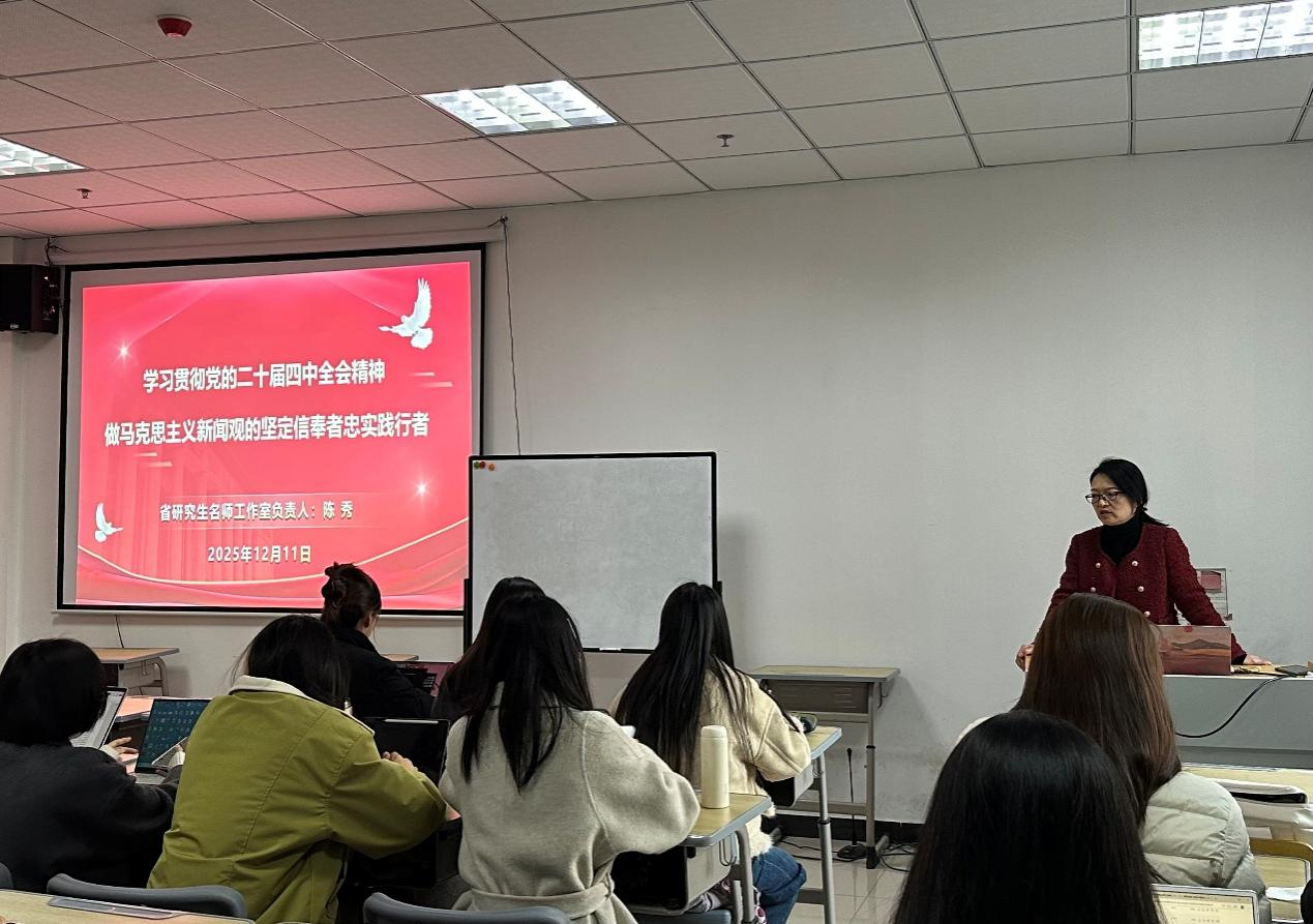研究生名师工作室负责人陈秀在K201教室作题为“学习贯彻党的二十届四中全会精神,做马克思主义新闻观的坚定信奉者忠实践行者”的讲座。夫妻论坛